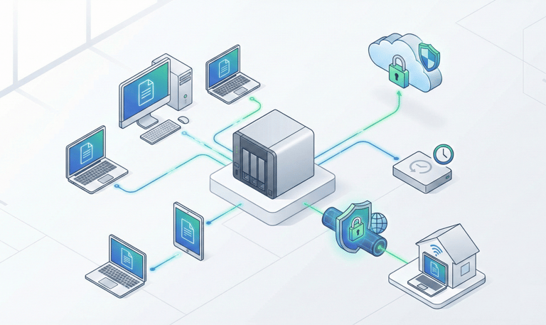 Stockage Réseau (NAS) : Serveur de fichiers local pour centraliser et partager vos documents en interne.